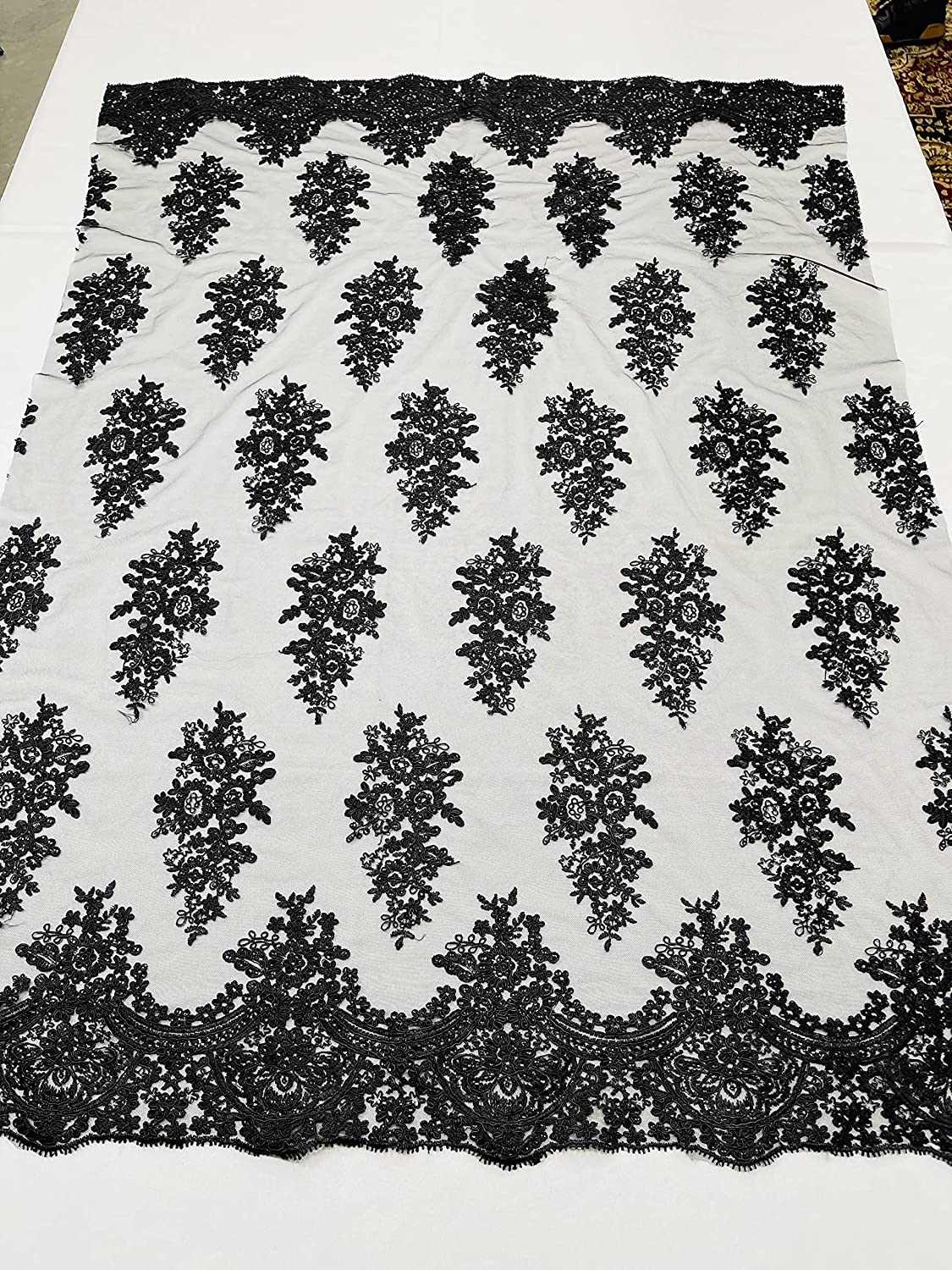 52/58" Wide Lexxi Embroidered with Clear Sequins On A Mesh Lace Fabric, Prom Fabric by The Yard (1 Yard, Black