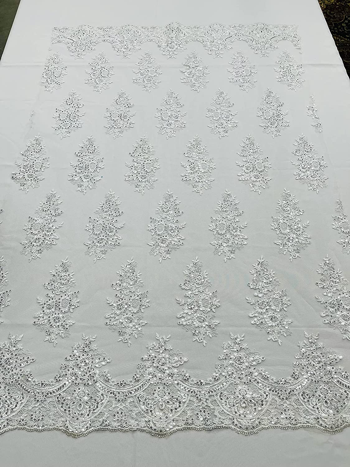 52/58" Wide Lexxi Embroidered with Clear Sequins On A Mesh Lace Fabric, Prom Fabric by The Yard (1 Yard, White / Silver)
