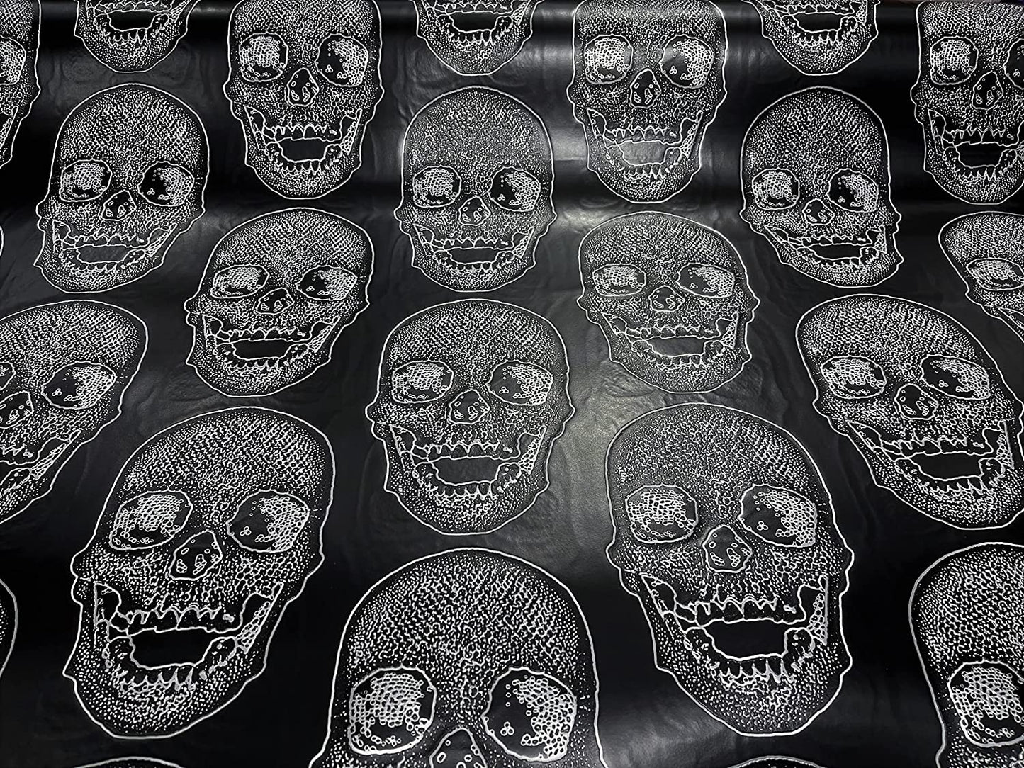 54" Wide Big Skull Embossed Vinyl Fabric-PVC-Upholstery, Faux Leather (1 Yard, Black)
