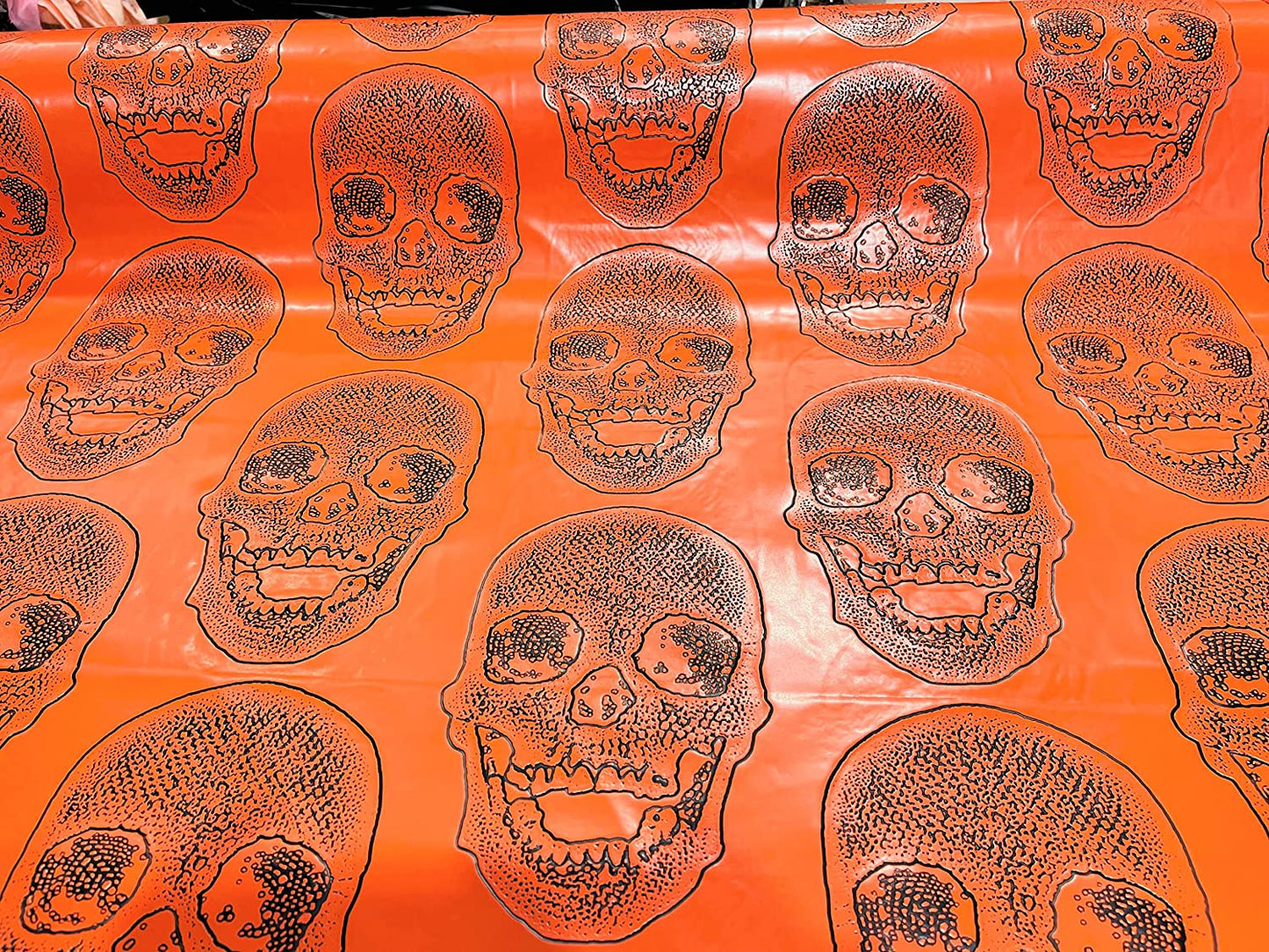 54" Wide Big Skull Embossed Vinyl Fabric-PVC-Upholstery, Faux Leather (1 Yard, Orange)