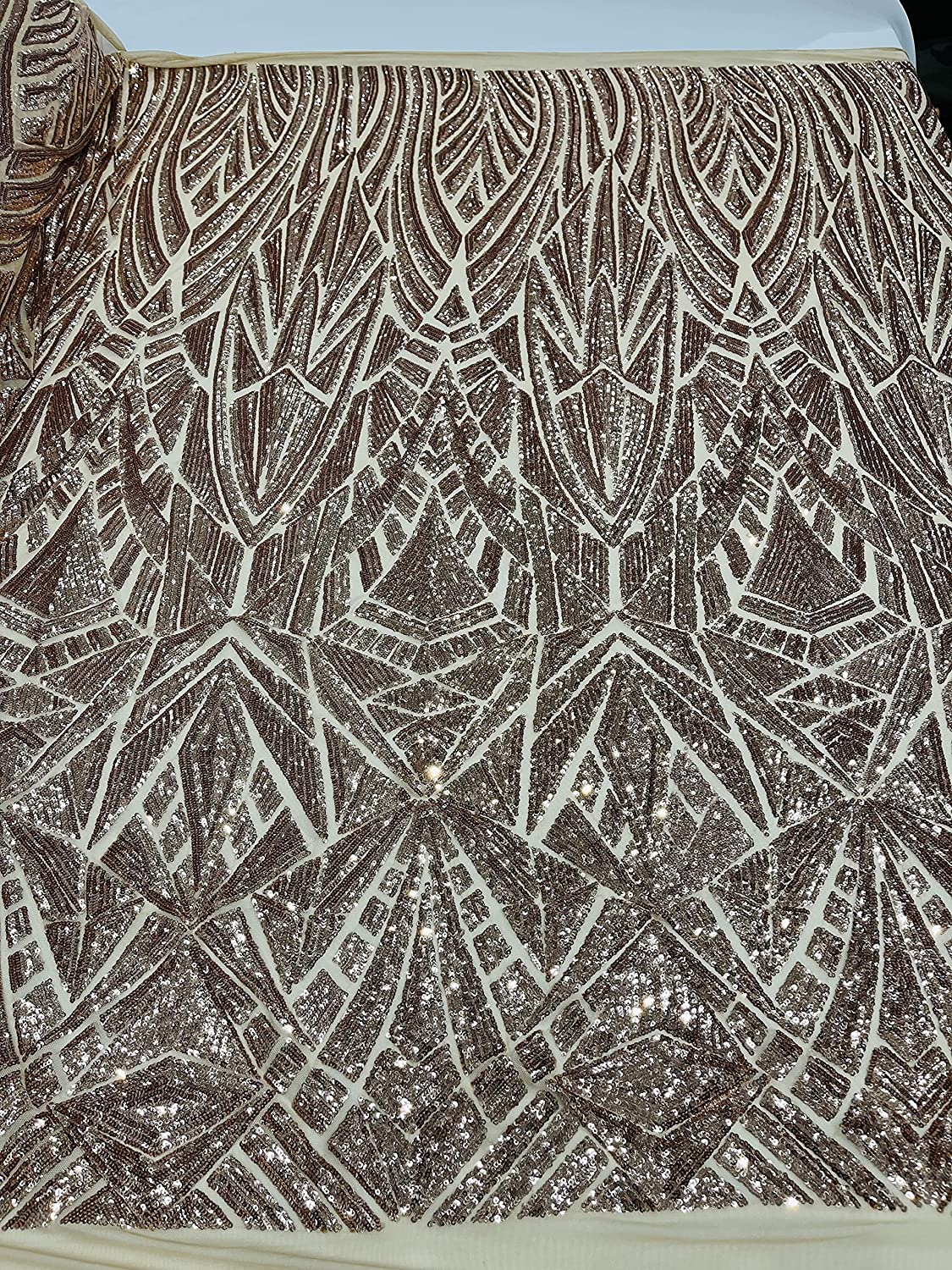 54" Wide Geometric Shiny Sequin Design on A 4 Way Stretch Mesh Fabric (1 Yard, Gold)