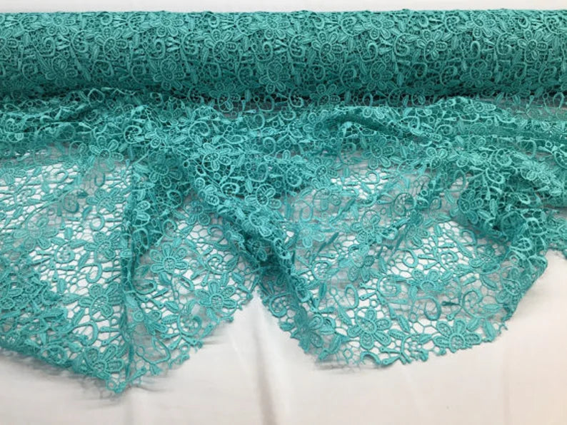 Aqua paisley flower guipure, wedding/bridal/prom/nightgown fabric sold by the yard