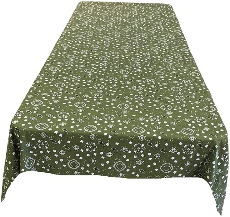 Bandanna Print Poly Cotton Tablecloth (Olive,