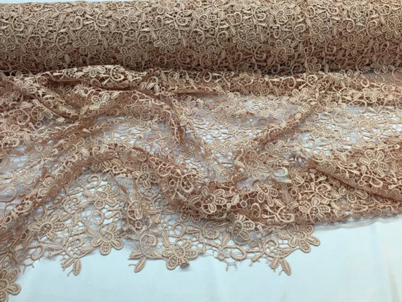Dk.peach paisley flower guipure, wedding/bridal/prom/nightgown fabric sold by the yard