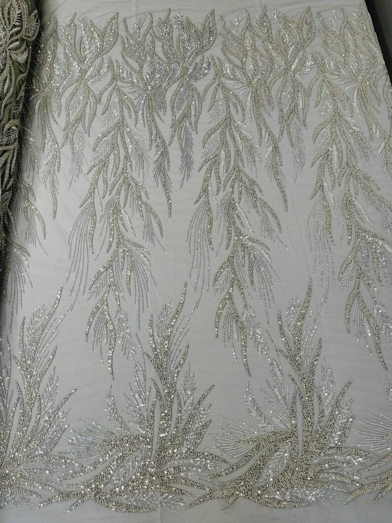 Fiesta Design Embroider and heavy beading on a mesh lace-sold by the yard. Silver