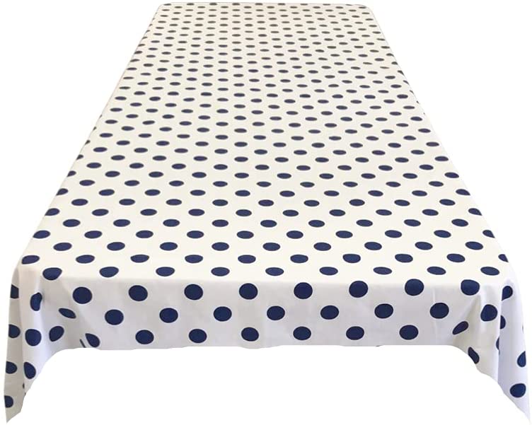Polka Dot Poly Cotton Tablecloth (Navy Blue Dot on White,