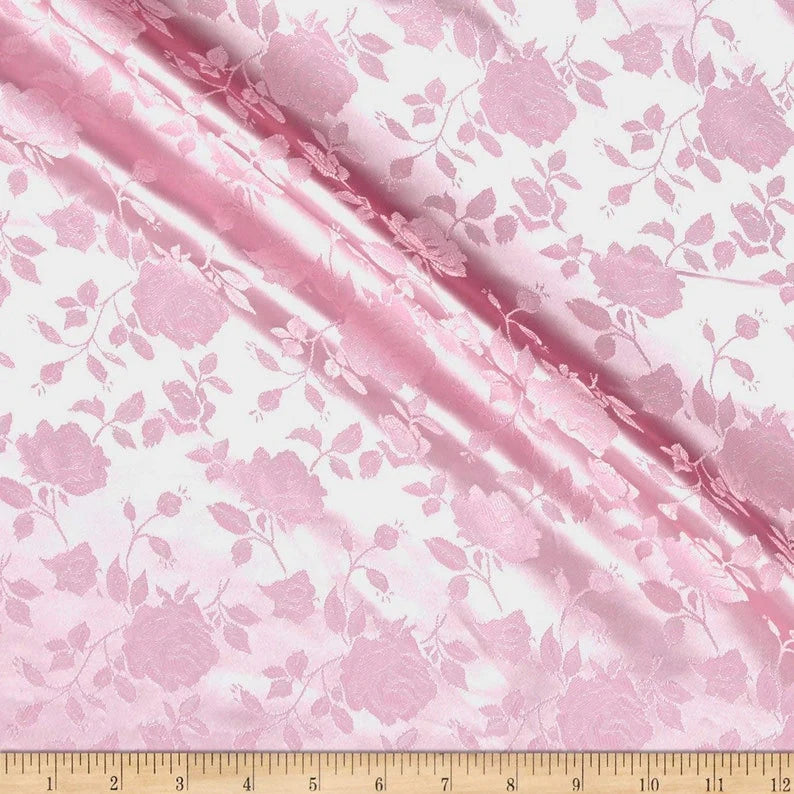 Polyester Flower Brocade Jacquard Satin Fabric, Sold By The Yard. Pink