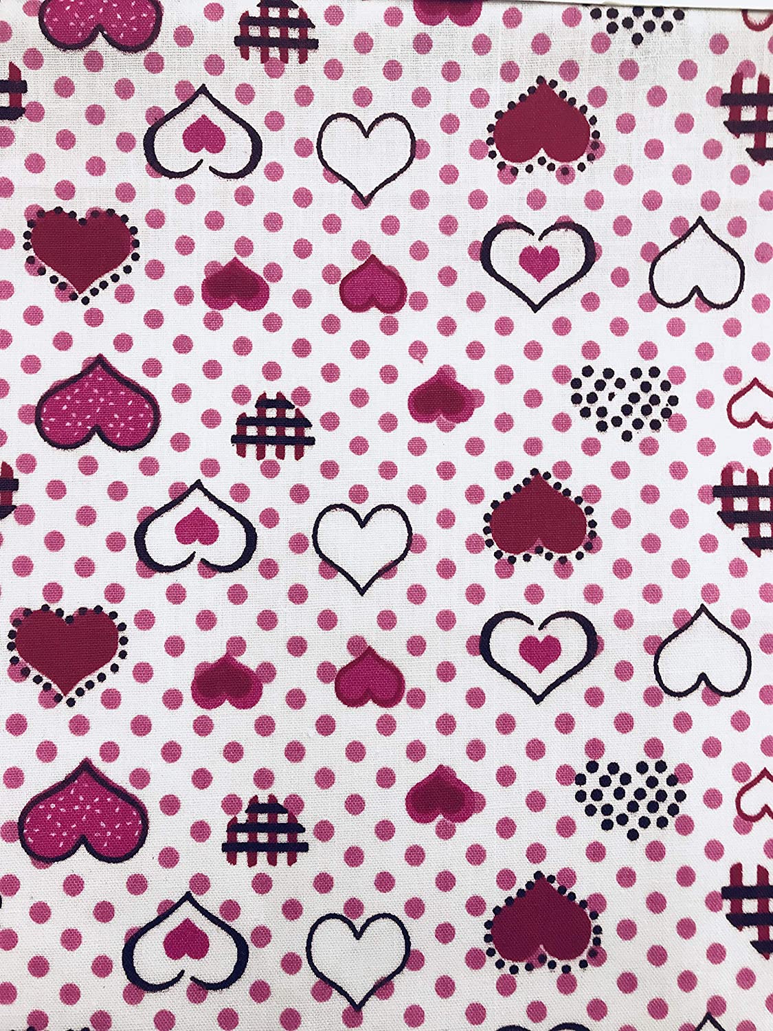 Red Hearts and Pink Dots Poly Cotton Print Fabric by The Yard