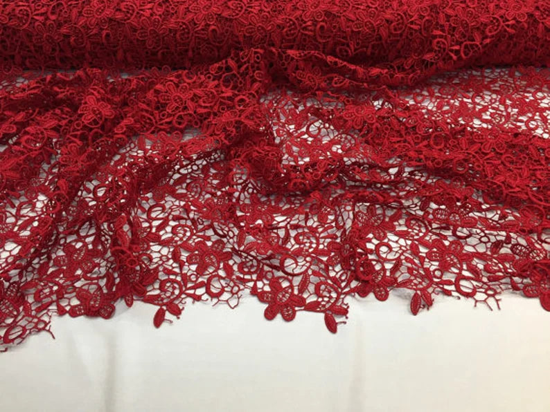 Red paisley flower guipure, wedding/bridal/prom/nightgown fabric sold by the yard