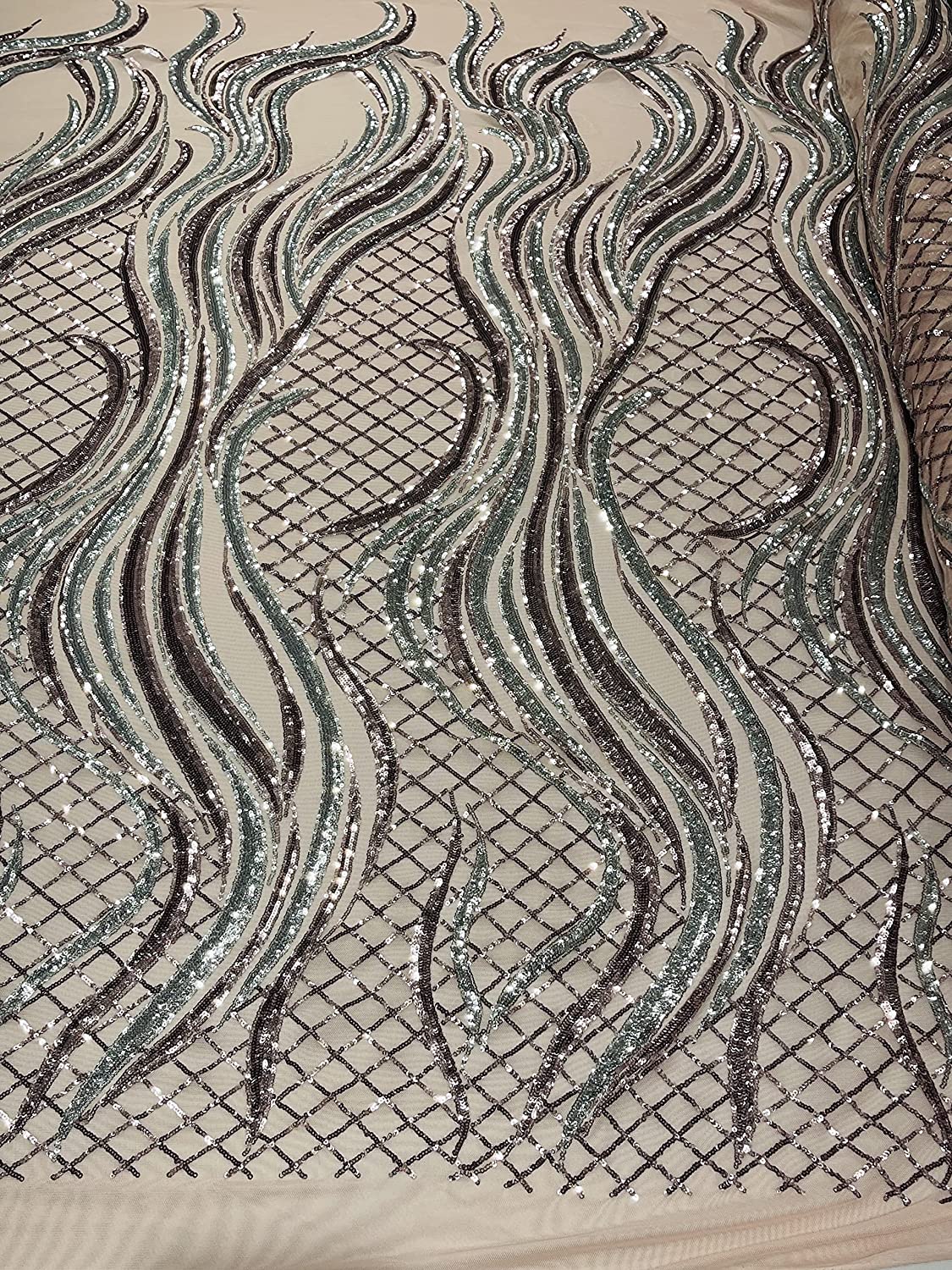 Sequin Flame Design On A 4 Way Stretch Mesh Fabric by The Yard (1 Yard, Dusty Pink/Silver)