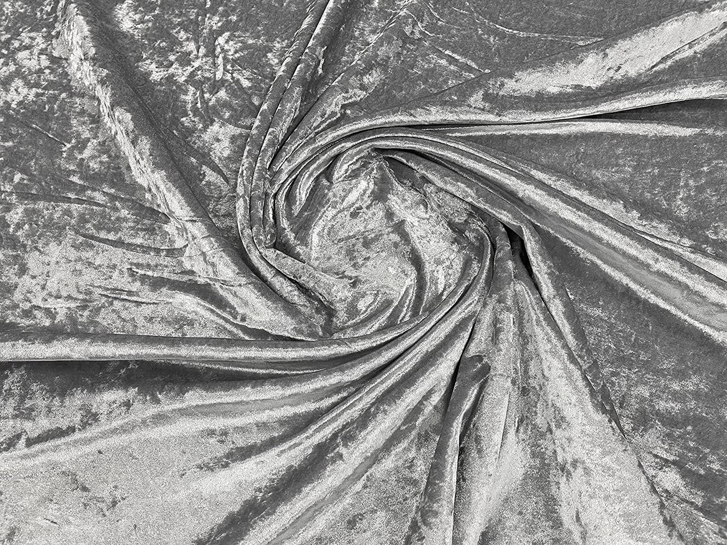 Solid Crushed Velour Stretch Velvet Fabric (1 Yard, Silver)