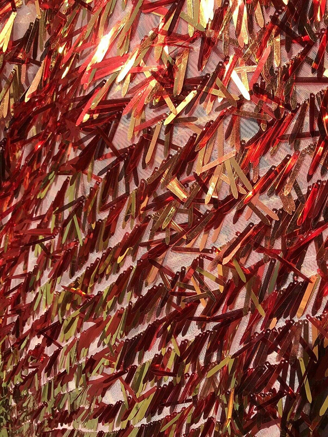 Swords Design Iridescent Sequins Burning Man Costume Craft Fabric by The Yard. (50-52 INCHES Iridescent Sequins by The Yard Orange Iridescent/Nude MESH)